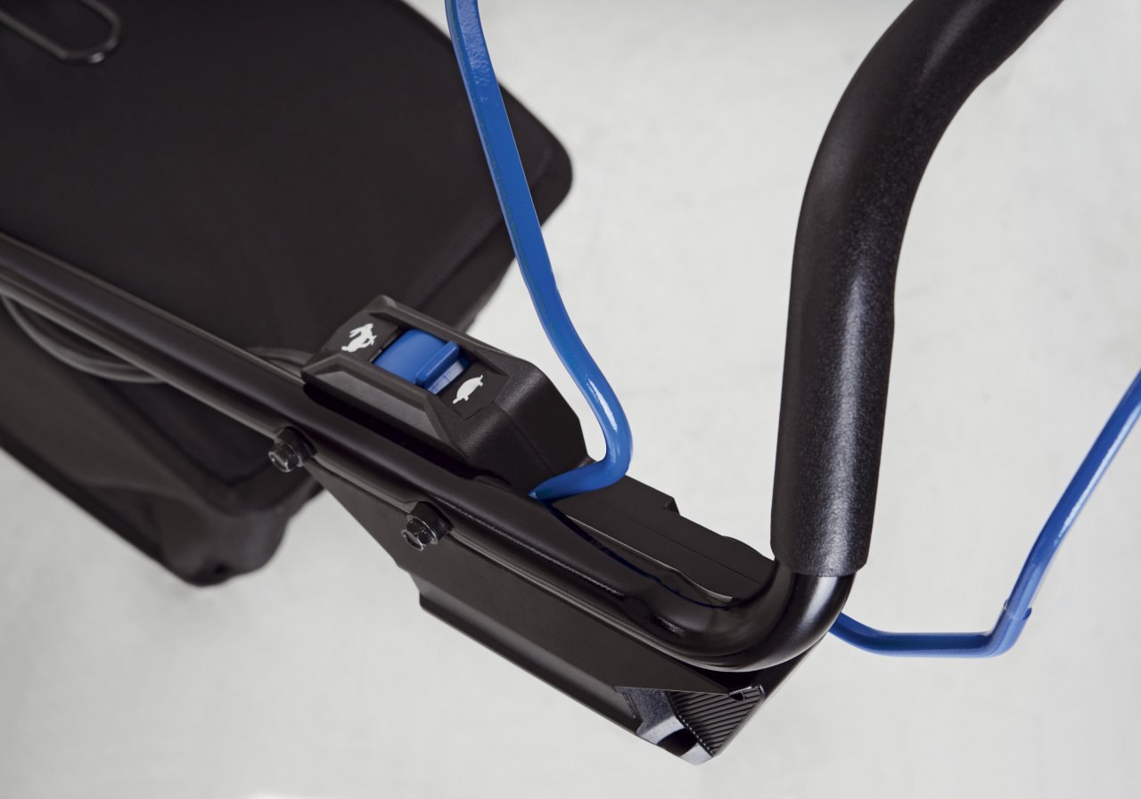 Nastavení výšky sečení nebylo nikdy jednodušší. Nastavení je centralizované díky jediné páce pro výběr mezi 6 různými polohami.